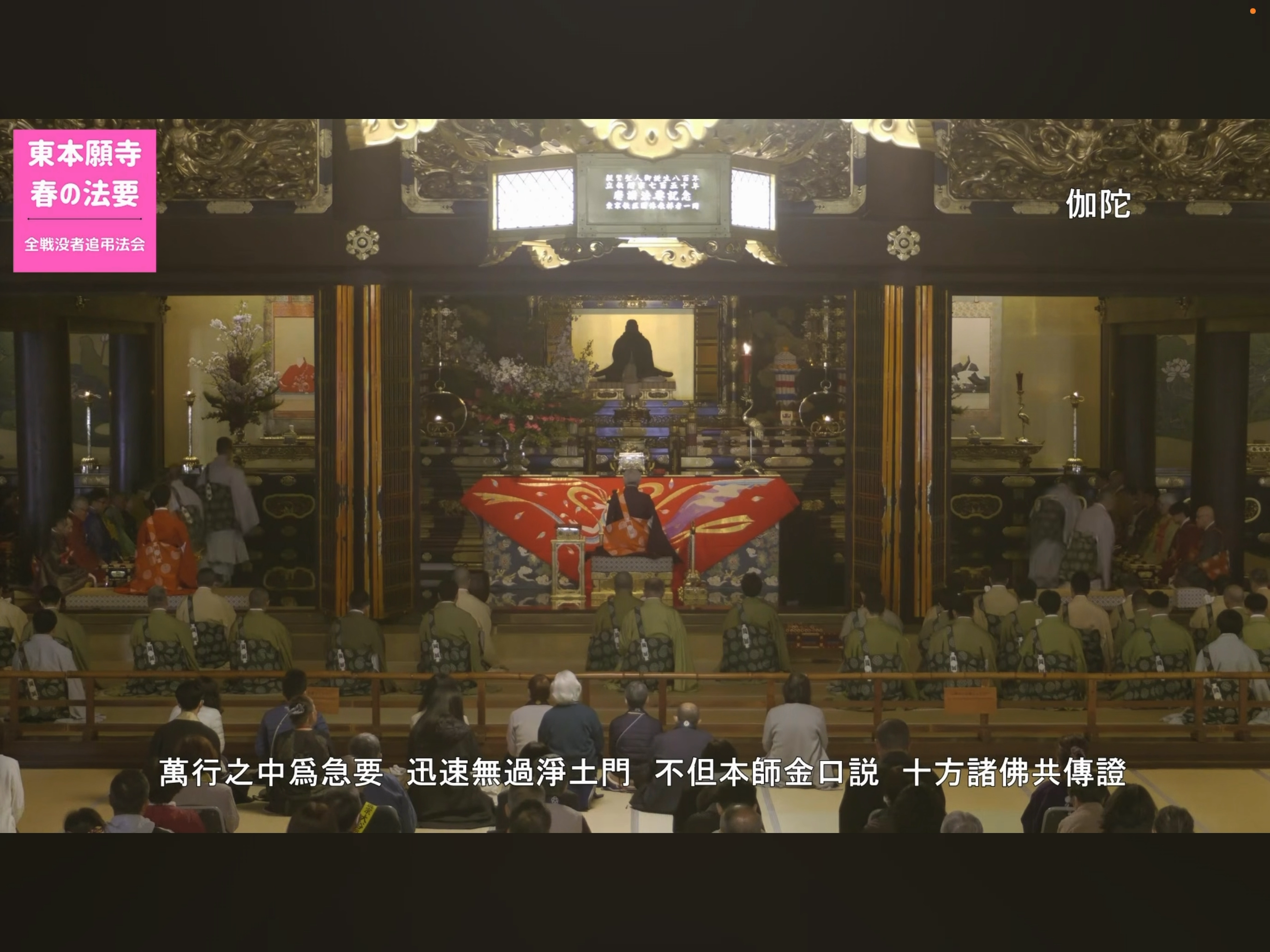 伽陀中に右側に複座されたご門主調声の下 阿弥陀経と正信偈同朋奉讃が唱和されました